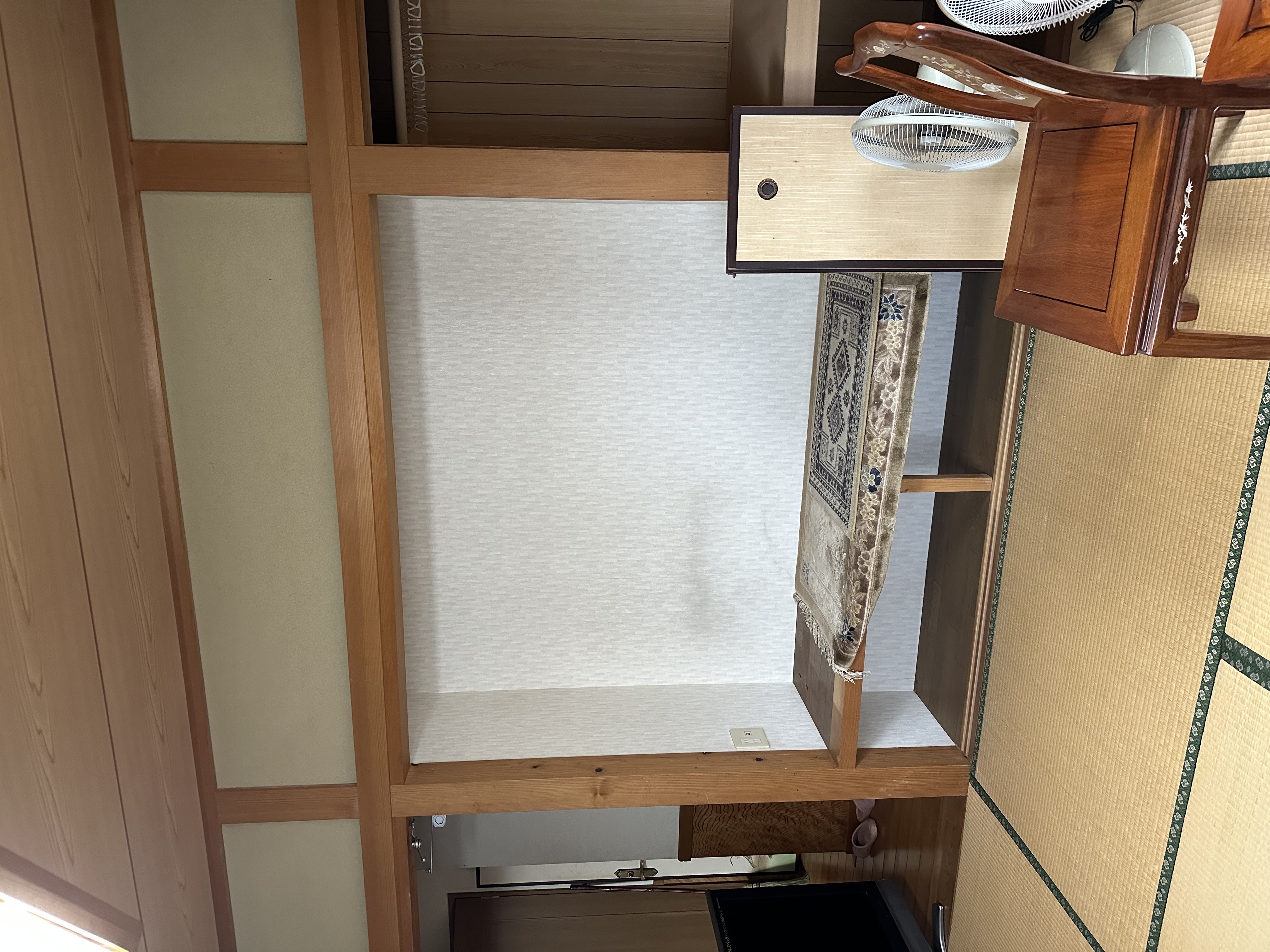 元からあった長押(なげし)を利用して、なるべく金具を使わず棚を固定しました。