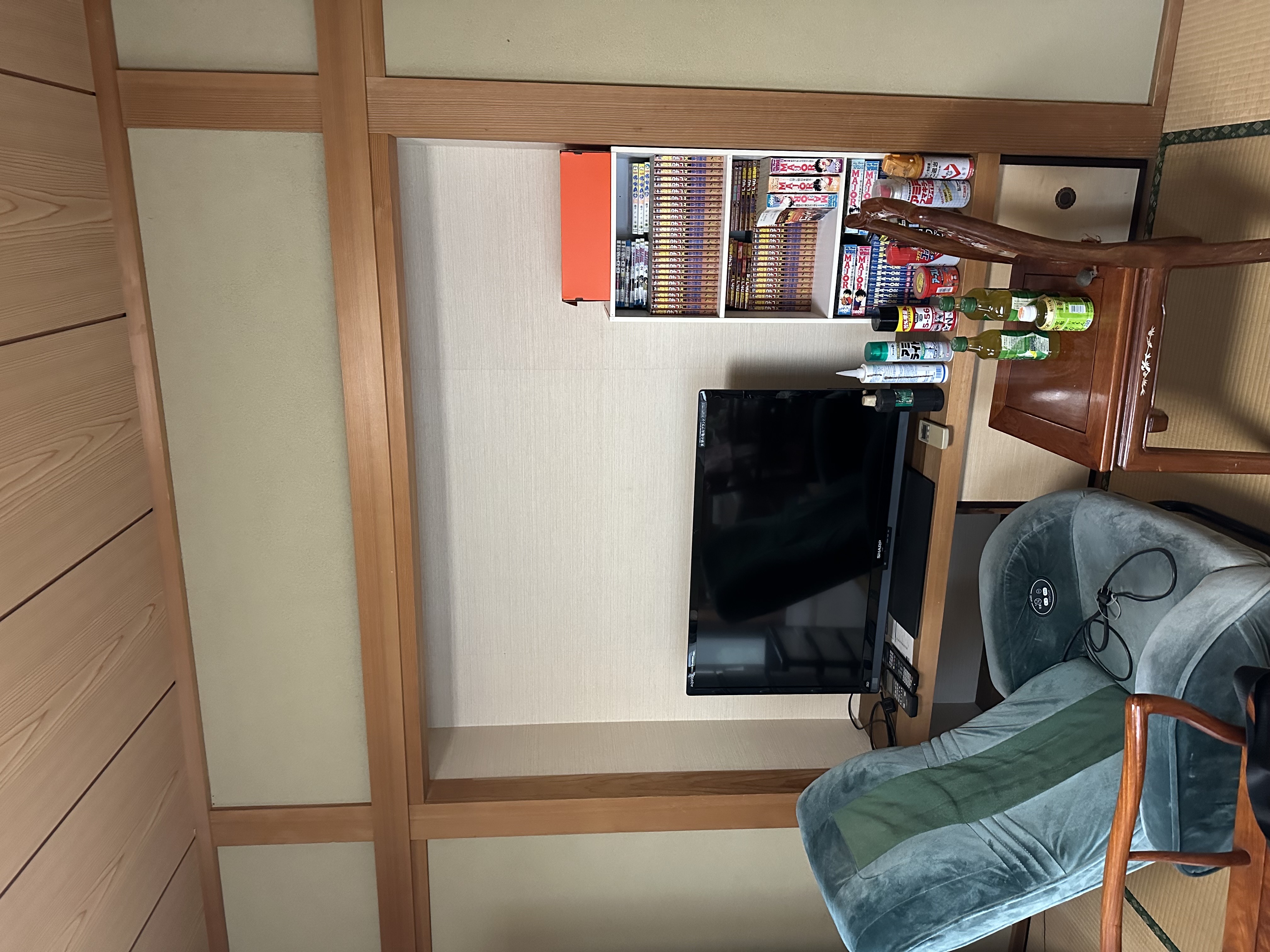 テレビ台の右端はルンバ基地。隣はトイレを設けました。