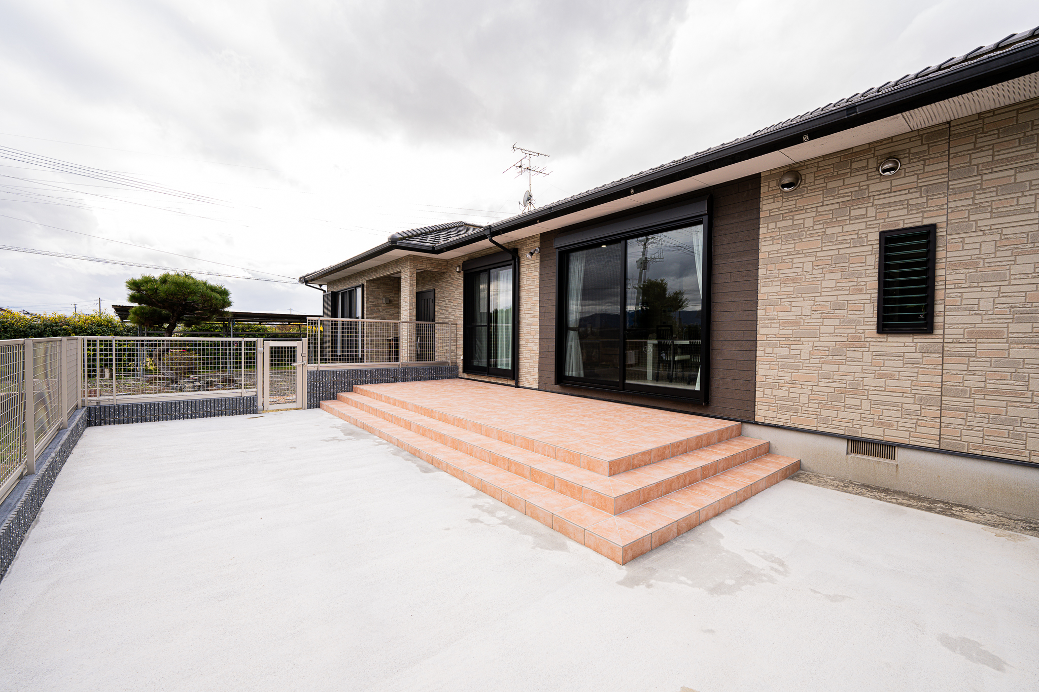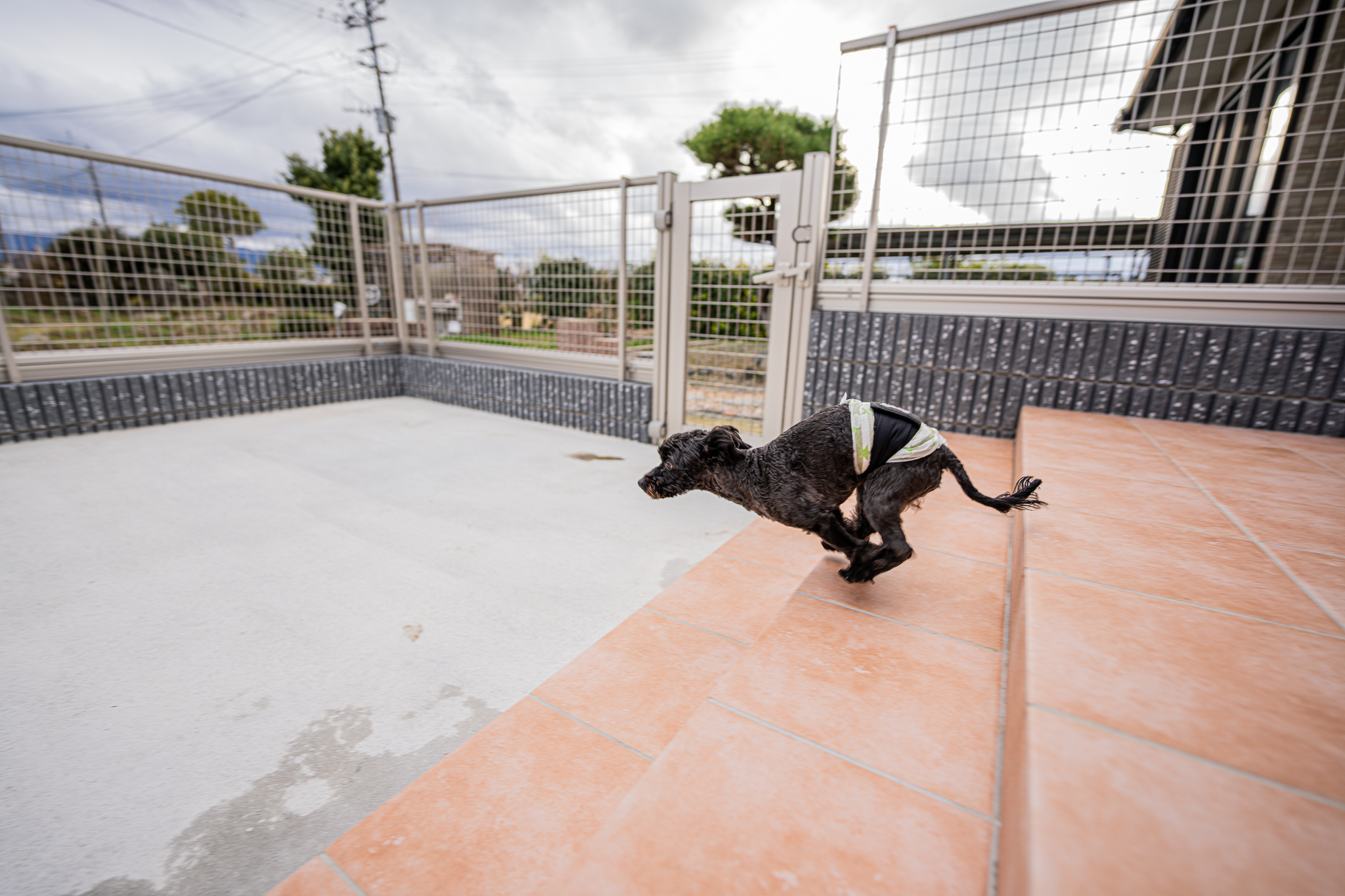 広々ドッグランを作りました。小さい子が飛び出さない様に脱走防止プレートも設けています。後から人工芝を敷き詰める予定です。